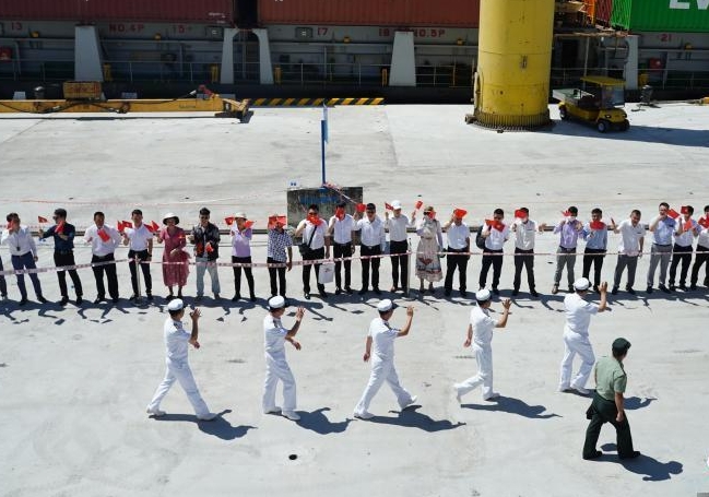 10 gi? sáng theo gi? ??a ph??ng, t?i c?u c?ng s? 2A b?n c?ng Tiên Sa, ?à N?ng, Vi?t Nam ?? t? ch?c l? ti?n tr?ng th?. Sau khi r?i c?ng, tàu Thích K? Quang và các tàu chi?n H?i quan Vi?t nam ?? có bu?i hu?n luy?n chung.