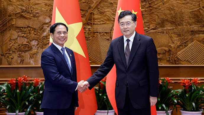 Theo Tan Hoa x?: Ngày 25/6, t?i B?c Kinh, ?y viên Qu?c v?, B? tr??ng Ngo?i giao Trung Qu?c T?n C??ng ?? ti?p B? tr??ng Ngo?i giao Vi?t Nam Bùi Thanh S?n ?ang tháp tùng Th? t??ng Ph?m Minh Chính th?m Trung Qu?c.
