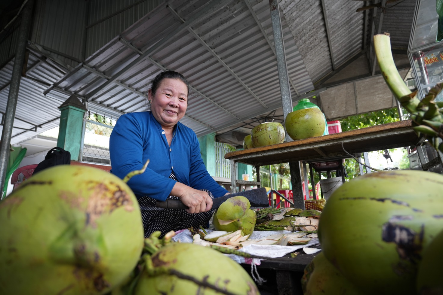 Bà Lê Ng?c Tuy?t ch?t d?a ph?c v? khách (?nh: ADB, 24/10/2024)