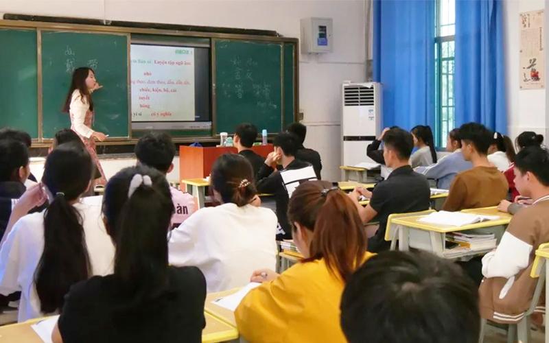 B??c vào kh?i 11 l?p 35 c?a Tr??ng Trung h?c Cao c?p ngh? Hà Kh?u, t?nh Van Nam, các h?c sinh Vi?t Nam ?ang luy?n t?p k? n?ng nói ti?ng Trung. Hi?n t?i, tr??ng có h?n 200 h?c sinh Vi?t Nam, ch??ng trình h?c bao g?m m?n nghe, ??c hi?u, vi?t v?n v.v… gi?ng d?y b?ng ti?ng Trung m?t cách h? th?ng cho các h?c sinh. Ngoài ra, m?i h?c k? tr??ng còn t? ch?c các khóa ?ào t?o ngh? ?a d?ng nh? h??ng d?n viên du l?ch, d?ch v? ?n u?ng, bu?c ch? nhu?m v?i th? c?ng cho h?c sinh Vi?t Nam.