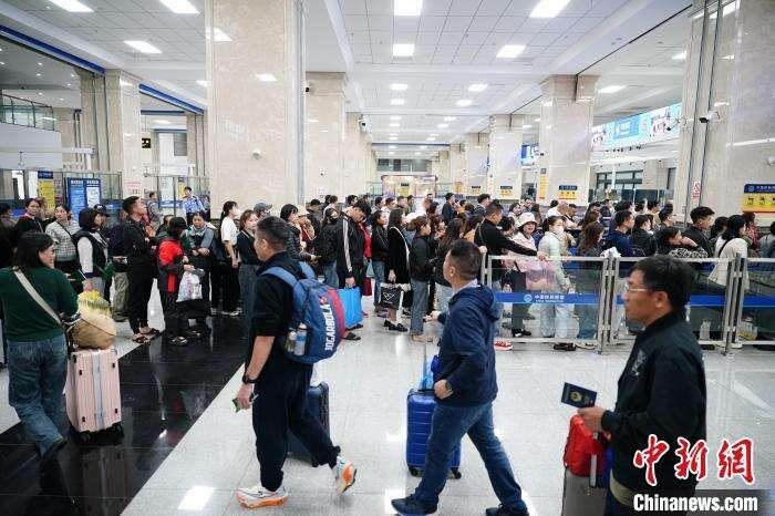 Ngày 16/3, du khách x?p hàng ch? th?ng quan t?i c?a kh?u Hà Kh?u, huy?n Hà Kh?u, chau H?ng Hà, t?nh Van Nam.