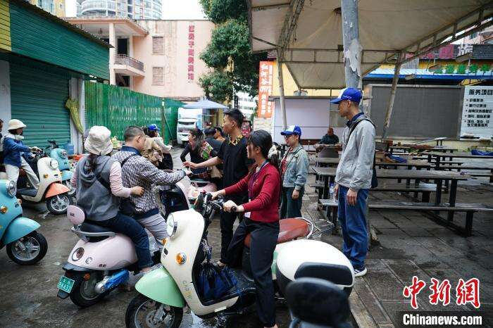 Ngày 16/3, trên ???ng ph? t?i huy?n Hà Kh?u, chau H?ng Hà, t?nh Van Nam, m?t nhóm du khách Vi?t Nam d?o ph? trên nh?ng chi?c xe máy ?i?n thuê.