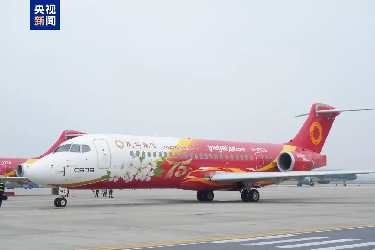 Theo Tan Hoa x?: Ngày 19/4, hai chi?c máy bay C909 do H?ng hàng kh?ng Thành ?? cho H?ng hàng kh?ng VietJet c?a Vi?t Nam thuê ??t ?? chính th?c ??a vào khai thác tuy?n bay kh? h?i Hà N?i – C?n ??o – TP. H? Chí Minh, ?ánh d?u vi?c máy bay th??ng m?i do Trung Qu?c s?n xu?t b?t ??u v?n hành th??ng m?i t?i th? tr??ng Vi?t Nam.