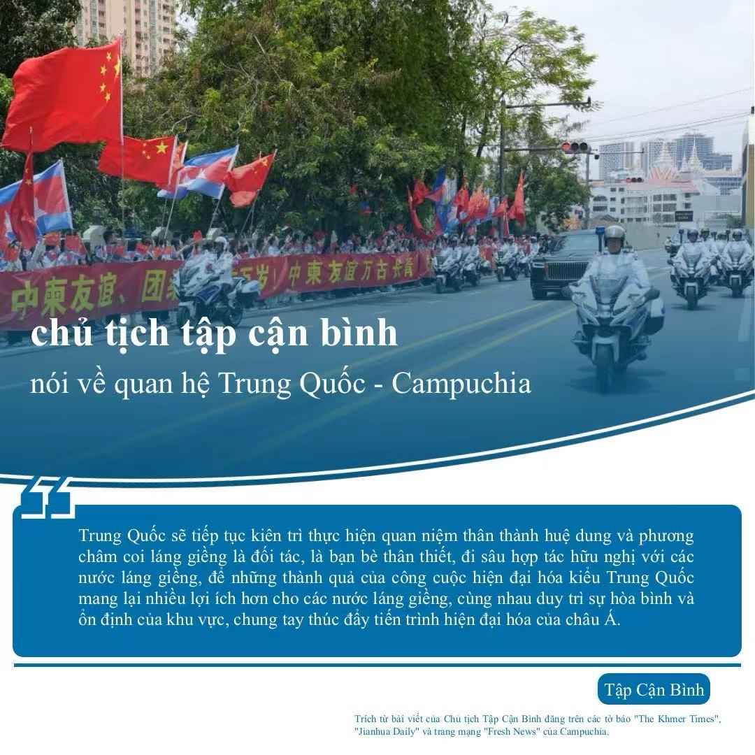L?i ng??i biên t?p: Ngày 17 tháng 4 n?m 2025, Ch? t?ch n??c C?ng hòa Nhan dan Trung Hoa T?p C?n Bình ?? ??n Phnom Penh, b?t ??u chuy?n th?m c?p nhà n??c t?i V??ng qu?c Campuchia, v?i mong mu?n thúc ??y h?n n?a xay d?ng c?ng ??ng chia s? t??ng lai Trung Qu?c - Campuchia. D??i ?ay là nh?ng ?i?m chính trong bài phát bi?u quan tr?ng c?a Ch? t?ch T?p C?n Bình trong chuy?n th?m này.