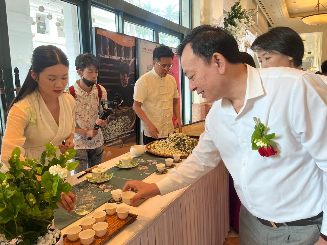 Ch? Mai Th? Tuy?t Minh, T?ng giám ??c C?ng ty C? ph?n Du l?ch Qfarm (Vi?t Nam) là m?t trong nh?ng ??i di?n doanh nghi?p ??n tham d? ch??ng trình giao l?u. Thành l?p t? n?m 2018, c?ng ty Qfarm có t?m nhìn r?ng m? và ?? t?ng b??c thành c?ng trong vi?c xay d?ng m?t h? sinh thái khép kín v? trà shan tuy?t c? th? ? mi?n B?c Vi?t Nam v?i các s?n ph?m trà ch?t l??ng cao, vùng nguyên li?u trà, khu ngh? d??ng sinh thái và kh?ng gian v?n hoá trà – n?i nh?ng ng??i yêu trà giao l?u v?n hoá, chia s? kinh nghi?m và th??ng th?c trà. Sau khi ???c tr?i nghi?m m?t s? lo?i trà n?i ti?ng c?a Qu?ng Tay t?i s? ki?n ngày 21/5, ch? Minh th?y ??c bi?t ?n t??ng v?i k? thu?t ??p h??ng hoa c?a trà nhài Hoành Chau.