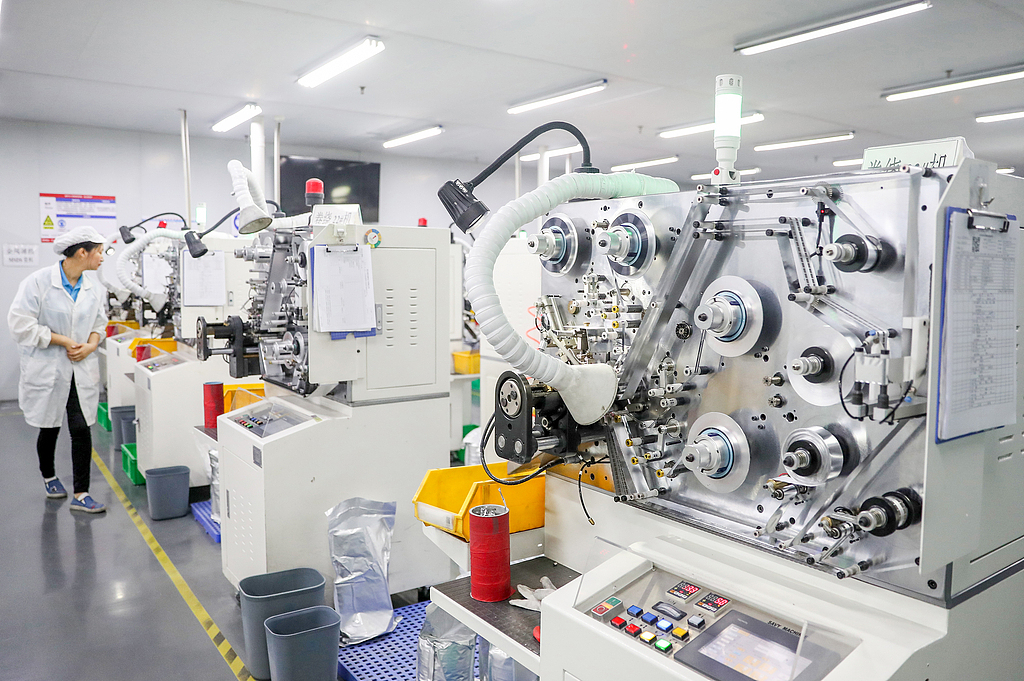 K? thu?t viên ki?m tra máy móc gia c?ng s?n ph?m t?i C?ng ty TNHH ?i?n t? Chuangshiding, Khu phát tri?n kinh t? núi Huaying, t?nh T? Xuyên, Trung Qu?c, ngày 7/5/2025. (?nh: CGTN)