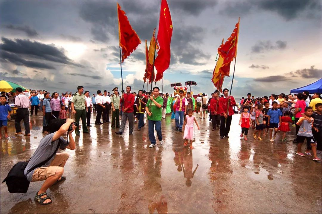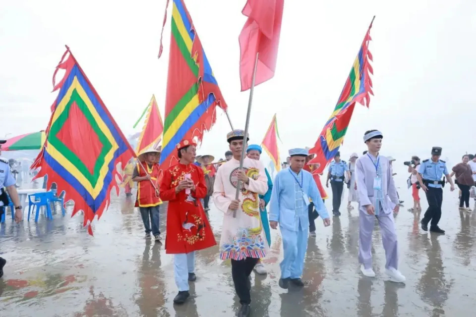 “?oàn r??c th?n cu?a chu?ng t?i m?c trang ph?c dan t?c s?c s?, khiêng ki?u th?n, v?a ?i ra b? bi?n v?a ?ánh tr?ng ?? nghênh ?ón th?n bi?n v? ?ình t? l?, hát ba?i Ha?t ?i?nh. R?t nhi?u du khách c?ng ??n c?u phúc.”