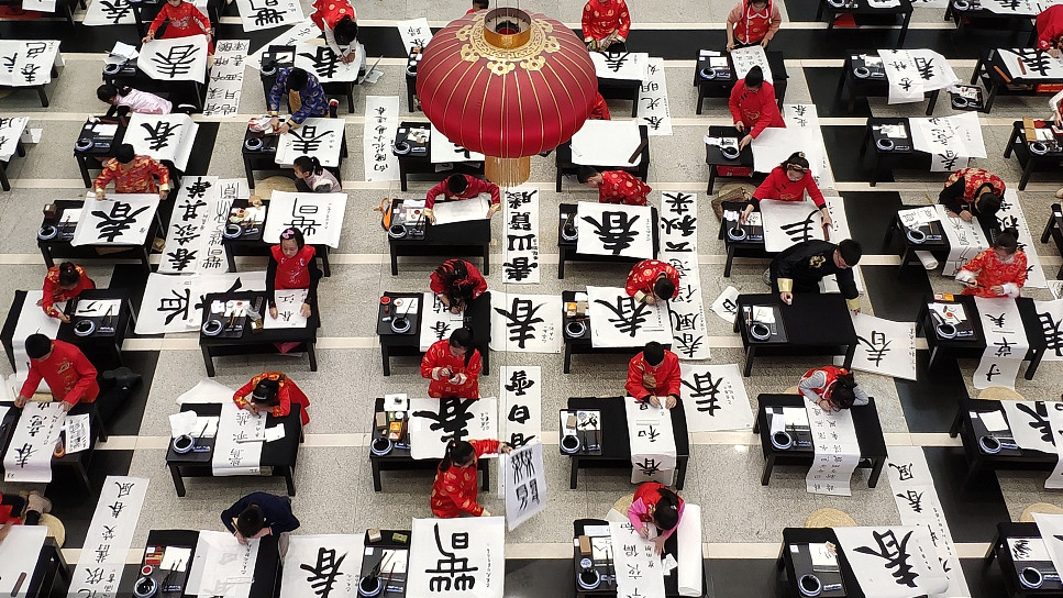 Tr? em Trung Qu?c và n??c ngoài tham gia m?t cu?c thi vi?t th? pháp